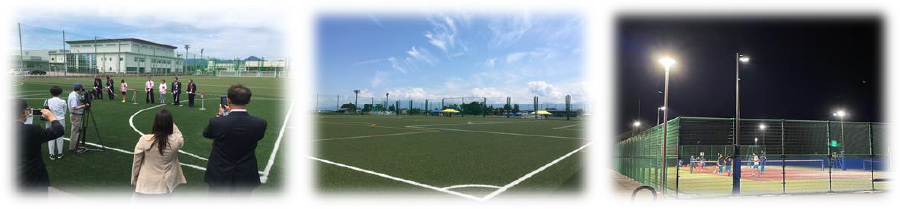 仙北地域の田茂木地区内に、大仙市の新しい施設として、多目的人工芝グラウンド「ふれあいスポーツランド・ソラーレ」がオープンしました。竣工式が6月下旬にあり、テープカットセレモニーを行いました。広さは、サッカーコートで2面、フットサルコートだと4面がとれる大きさで東北最大級を誇っています。