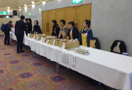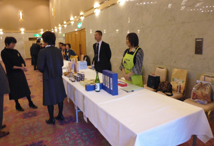 さくまろ会エプロンをつけて地元商品をPRしました。手前にあったしいたけは完売でした。